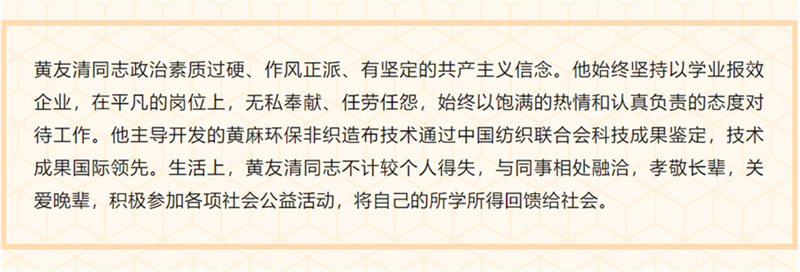 喜報丨郴州湘南麻業(yè)黃友清同志榮獲“郴州市五一勞動獎章”光榮稱號